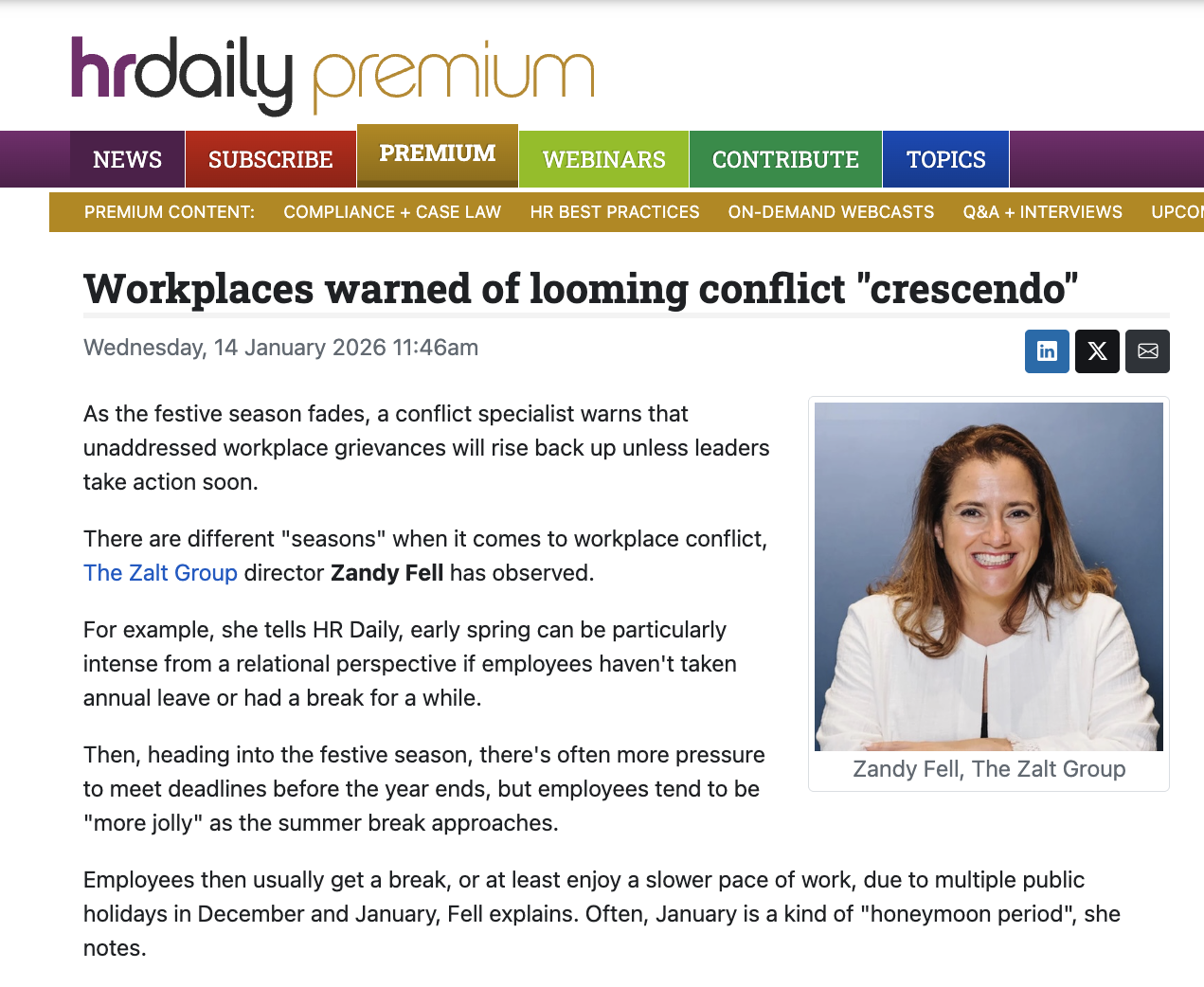 There are different “seasons” when it comes to workplace conflict, The Zalt Group Director Zandy Fell has observed.